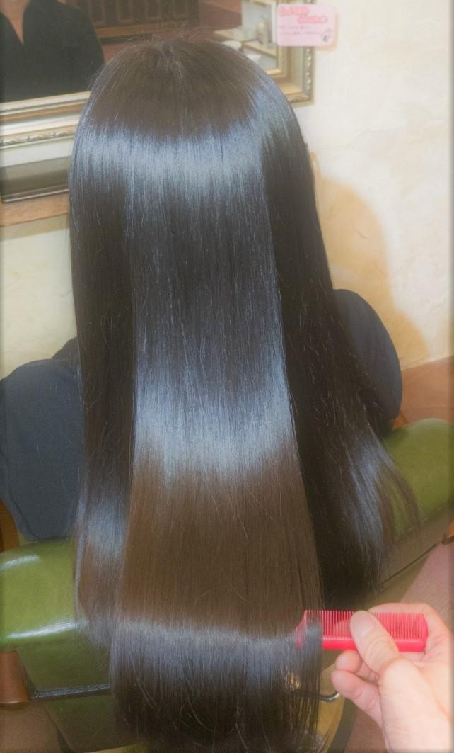 地毛のような艶髪ストレート、クセの状態やダメージに合わせてその場で調合し使用♪オリジナル髪質改善Tr♪ 極上の艶髪をご体験ください♪リタッチ幅により\550~2200全体の場合は\2200~3300